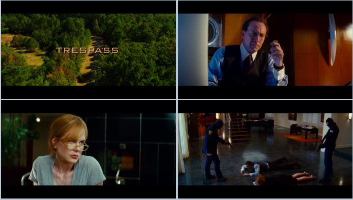 【影片原名】Trespass 【中文譯名】侵害/非法入侵/不忠之劫 【出品公司】Millenium Films 【出品年代】2011年 【上映日期】2011年10月14日 美國 【影片級別】USA:R 【IMDB評分】5.8/10 (572 users) 【國 家】美國 【類 別】驚悚/犯罪/劇情 【導 演】喬·舒馬赫 Joel Schumacher 【主演】尼古拉斯·凱奇Nicolas Cage ....Kyle 凱姆·吉甘戴 Cam Gigandet ....Jonah Collins 妮可·基德曼 Nicole Kidman ....Sarah 麗亞娜·萊伯拉托 Liana Liberato ....Avery 尼可·托托雷拉 Nico Tortorella ....Jake 喬丹娜·斯皮羅 Jordana Spiro 達什·米霍克 Dash Mihok 本·門德爾森 Ben Mendelsohn Zurab Matcharashvili ....Jake Tina Parker ....Security Operator Terry Milam ....Travis Gracie Whitton ....Young Avery Brandon Belknap ....Dylan David Maldonado ....Security Guard Herb Johnston ....Bar Patron Tavaris James Durell ....Night Club Patron (uncredited) 【內容簡介】 富俗的米勒家被四個冷血罪犯強行闖入,目標是米勒家的財富。夫婦蓋爾和莎拉及女兒艾弗莉被困屋中,雙方人馬各懷鬼胎,不肯妥協。 屋中的7人關係錯中復雜,當中更牽涉到莎拉和賊人祖的曖昧關係。一場金錢鬥爭,人人皆陷入背叛、欺騙、誘惑和詭計的漩渦中。蓋爾、莎拉和艾弗莉一家了生存、更為了家庭,冒著極大危險作出最後反擊。