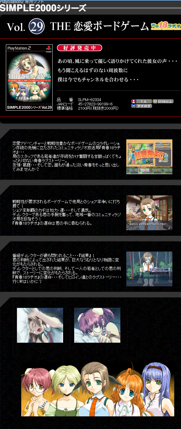 簡單2000系列第029集-戀愛桌上遊戲~青春18收音機(日)Simple 2000 Vol.29 The Nenai Board(SLPM62334) |