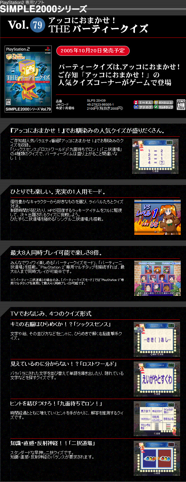 簡單2000系列第079集-聚會問答(日)Simple 2000 Series Vol. 79 The Party Quiz Akko ni Omakase(SLPS20439) |