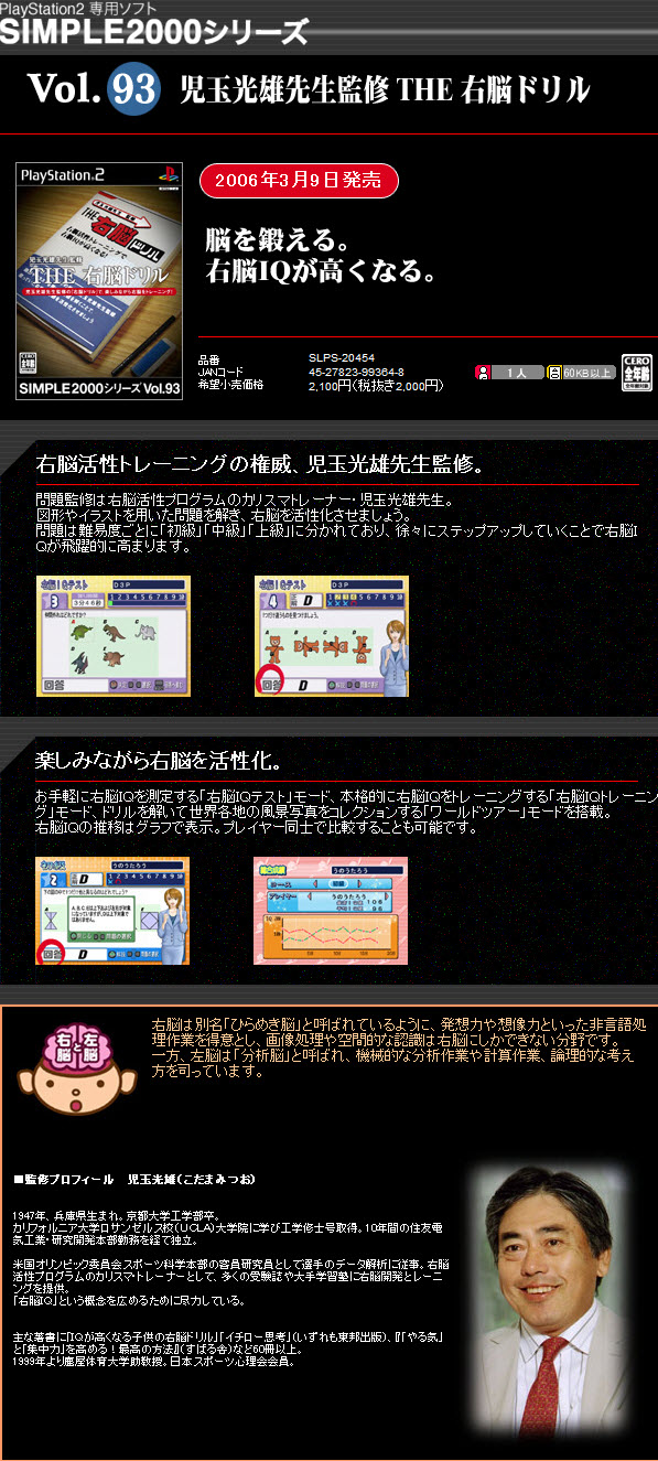 | 簡單2000系列第093集-右腦革命(日)Simple 2000 Series Vol. 93 The Unou Drill(SLPS20454) |