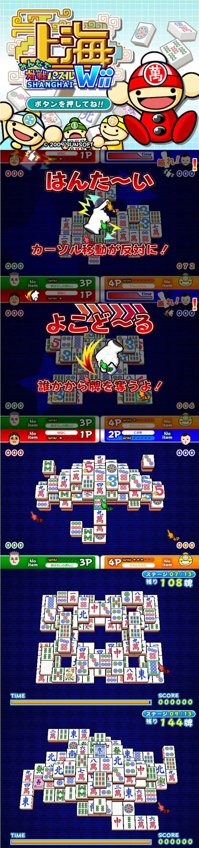 Wii新作《上海》中將收錄一人遊戲的「普通模式」、自由遊戲的「自由模式」、挑戰通關時間的「時間挑戰模式」以及在限制時間內完成取牌的「速度挑戰模式」。另外,NDS版上海中獲得好評的隨著時間流逝牌將會不斷增殖的「得分挑戰模式」也會在Wii版《上海》中登場。