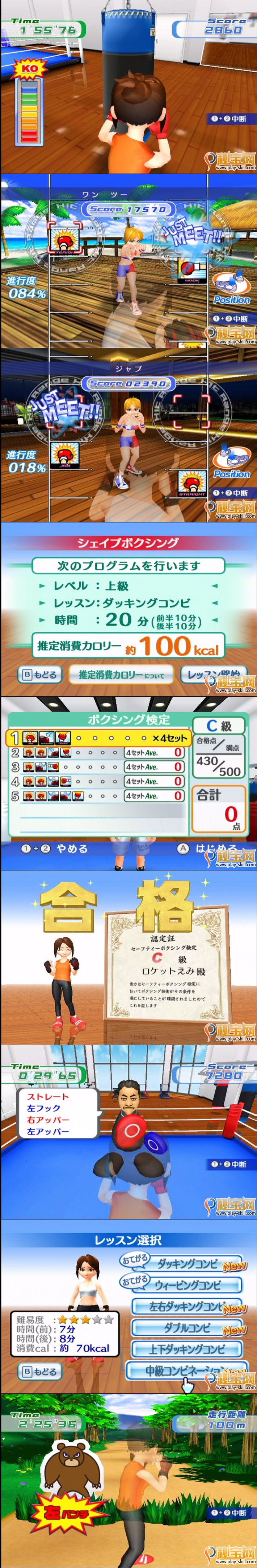 Wii版《有氧拳擊快樂瘦身》是一款家庭用運動瘦身遊戲,跟著畫面中教練的指導來進行拳擊運動,難易度共分五級,玩家可選擇自己適合的級數及目標來做訓練,讓你不出門就可以跟著遊戲來鍛煉身體!