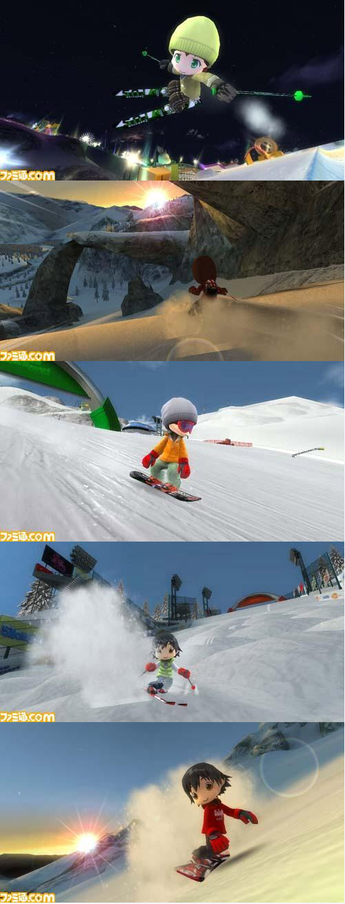 在本作中,玩家可以透過Wii搖桿跟雙節棍來進行簡單的操作,就算是初學者也可以輕鬆享受世界級滑雪高手的刺激滑雪樂趣。而且透過Wii平衡板的使用,還可以讓玩家有著更接近真實滑雪或使用滑雪板的操作樂趣。除此之外,在本作中還將會有各不同風格的各式各樣雪山登場,在這邊,就先為玩家們介紹「Mt.Angrio」跟「Jamboree Snow Resort」兩個雪山舞台關卡。其中「Jamboree Snow Resort」是個除了有著針對初學者或中級、上級者各式滑雪高手的滑雪路線跟森林路線等等的一個關卡,由於在這邊有許多例如像是跳台等人攻設施,因此可以讓玩家充分享受速度與華麗演出的樂趣效果。至於「Mt.Angrio」,則是一個山頂部份一眼望過去都是雲海包圍,沒什麼特別整備設施的滑雪舞台,玩家必須先利用直昇機登上山頂,並從斷崖絕壁的驚悚角度切面跟充滿岩石起伏的雪地上一路滑落下來,是一個可以充分享受超越極限的雪山滑雪樂趣的關卡!