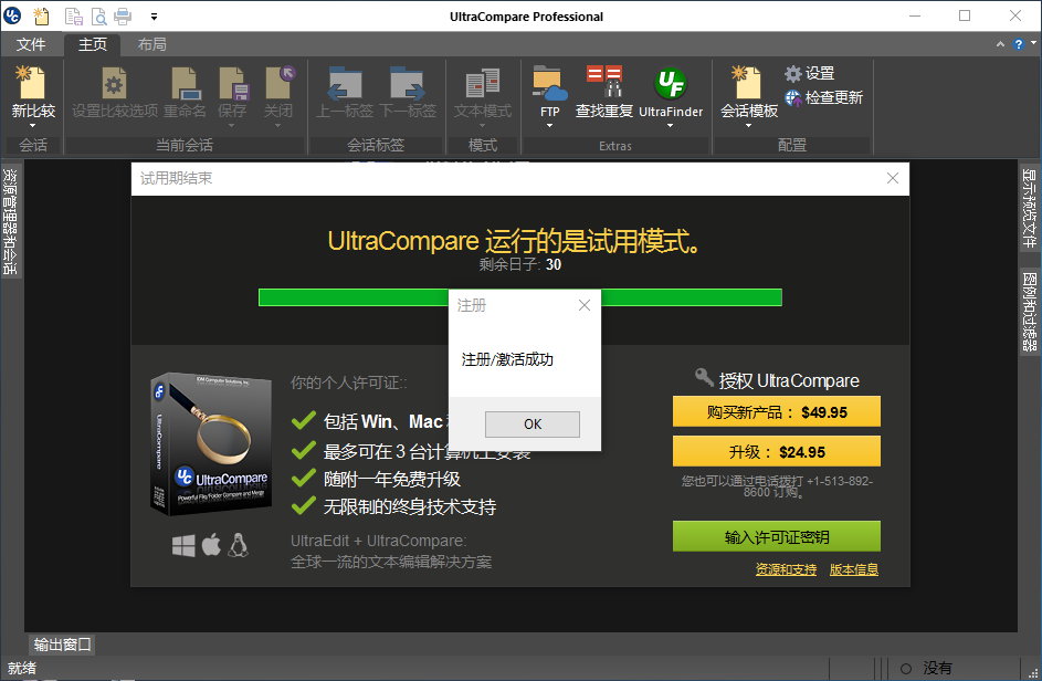 UltraCompare專業版是一款文件/文檔對比工具,它具有對比文本文檔,文件夾,文本資料,以及壓縮文件和jar文件的功能.UltraCompare 可以實現 文本對比, 二進制文檔對比 以及實現進行對比的文檔間的 不同點的整合. 你有一些文件夾需要進行對比嗎? UltraCompare也可以實現文件夾對比 – 包括當地/網絡目錄對比,壓縮文檔對比和FTP對比.UltraCompare支持自動簡單的文件夾同步化, 而且也支持 複製文檔finder.