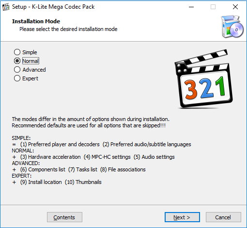64-bit: 64-bit K-Lite Codec Pack 是一個獨立的64位編解碼包,可在64位版本Windows上的64位播放器播放,並且可與其他版本共存。