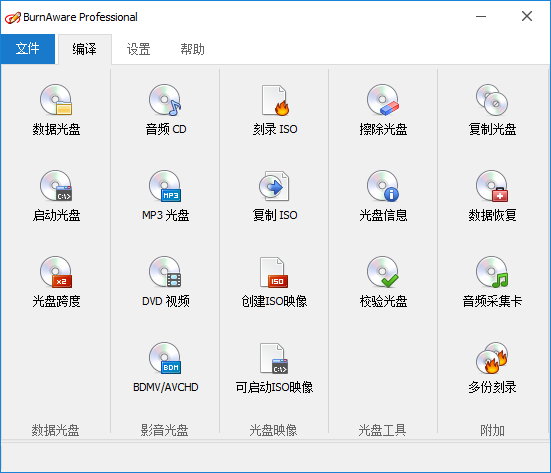 BurnAware Professional是一款強大的刻錄工具,它支持CD,DVD,藍光光盤和HD-DVD的媒體,支持所有標準的光存儲介質包括CD- R/RW,DVD-R/RW,DVD+R/RW,BD-R/RE,HD-DVD-R/RW和DVD-RAM等,也支持相當多的刻錄設備。