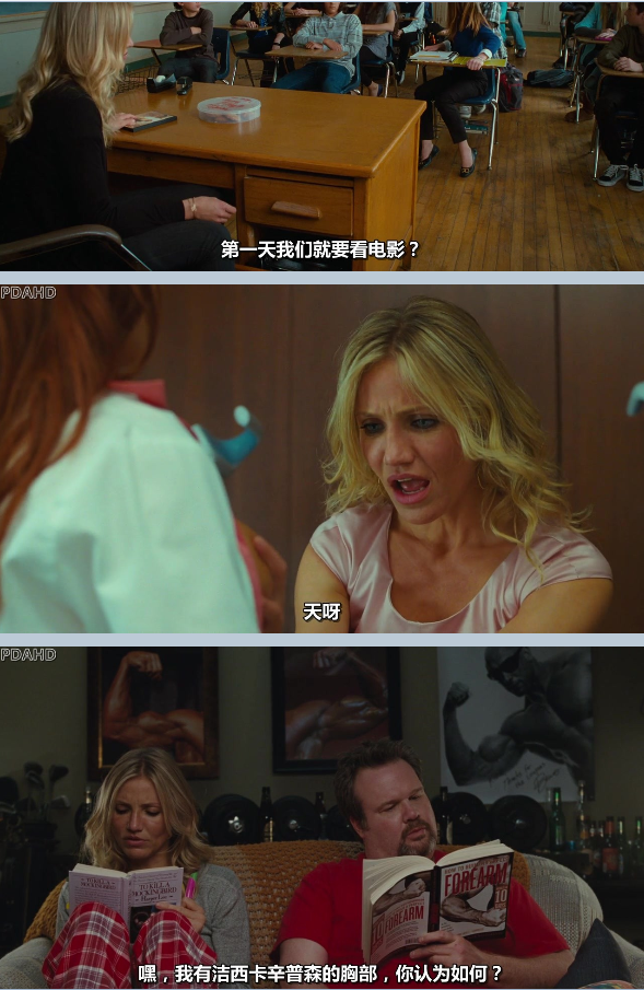 卡梅隆·迪亞茨扮演的伊麗莎白是一個“非主流”的老師,她視學生的答卷為糞土,但是卻從來不給學生F;她酗酒、好色、出言不遜、犬儒主義,而且還很狂妄和自大。她常常自詡為是大美女,但卻在結婚前夜被自己的未婚夫拋棄;她流連於夜店和聲色場所,但卻對婚姻和家庭充滿了渴望。