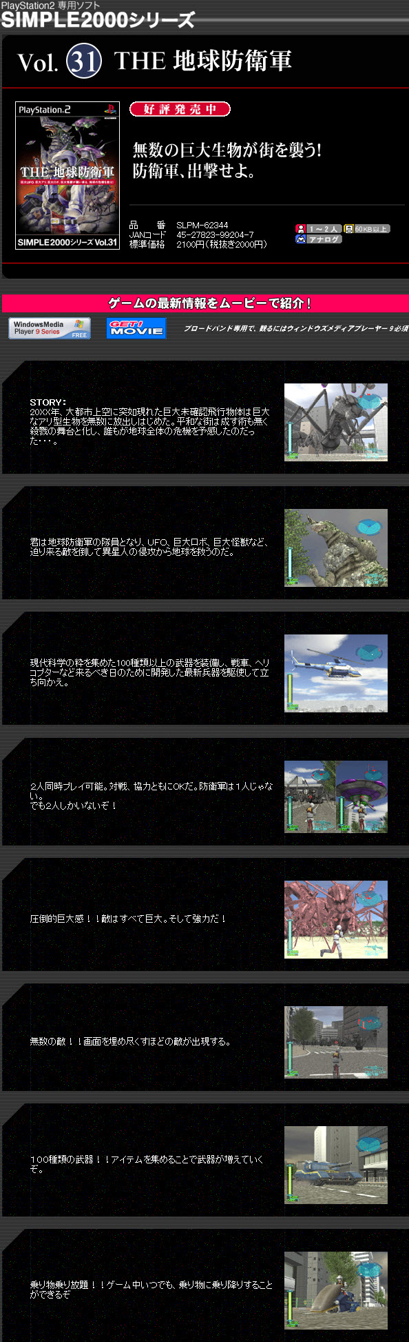 簡單2000系列第031集-地球防衛軍(日)Simple 2000 Series Vol. 31 The Chikyuu Boueigun(SLPM62344) |