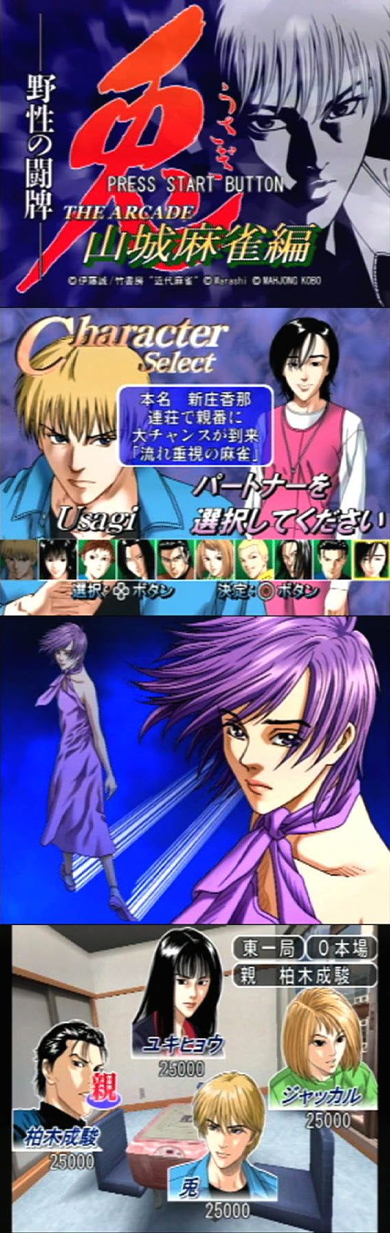 株式會社タイトーはプレイステーション 2用ソフトとして「兔 -野性の鬥碑- THE ARCADE 山城麻雀編」を2004年9月16日に發賣予定。価格は5,040円。本作は、同名アーケードゲームを完全再現した麻雀ゲーム。原作は「近代麻雀」に連載している「兔 -野性の鬥碑- 山城麻雀編」。 漫畫そのままの緊張感と驅け引きを再現、プレーヤーはパートナーを選んで2VS2の麻雀對決に挑んでいく。相手チームの合計と、自分のチームの合計で勝負は決まる。プレーヤーの前に立ちふさがるのは、闇の支配者「山城雷藏」率いる強豪達だ。 ステージは全5ステージ、合間にはデモが入り、對極氣分を盛り上げる。プレーヤーキャラクターとパートナーは主人公・兔と彼の仲間であるZOOメンバーから選擇する。コンティニューも可能なので、何度でも挑戰できる。 今作を面白くしている要素が、各キャラクタの持つ「特殊能力」。原作ファンはもちろんそうでない人も、特殊能力と、それを活かしたチーム戰の感觸を樂しんでもらいたい。今回は、各キャラクタの特殊能力を紹介。ZOOメンバーは、強大な敵にどうやって立ち向かうのだろうか?遊戲圖片: