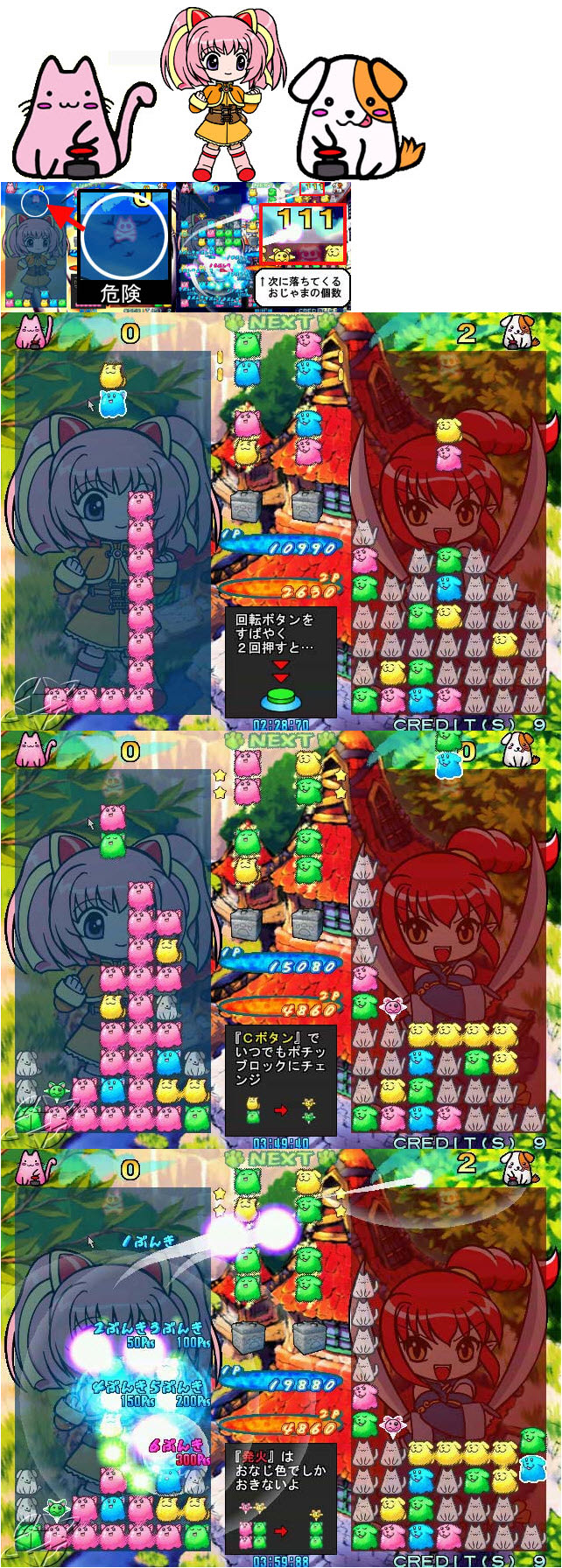 以“魔法氣泡”走紅遊戲界的日本COMPILE公司,日前又公佈一款最新大型益智遊戲“Pochinya”,遊戲以NAOMI機板開發,預計9月份委託TAITO公司發行推出。