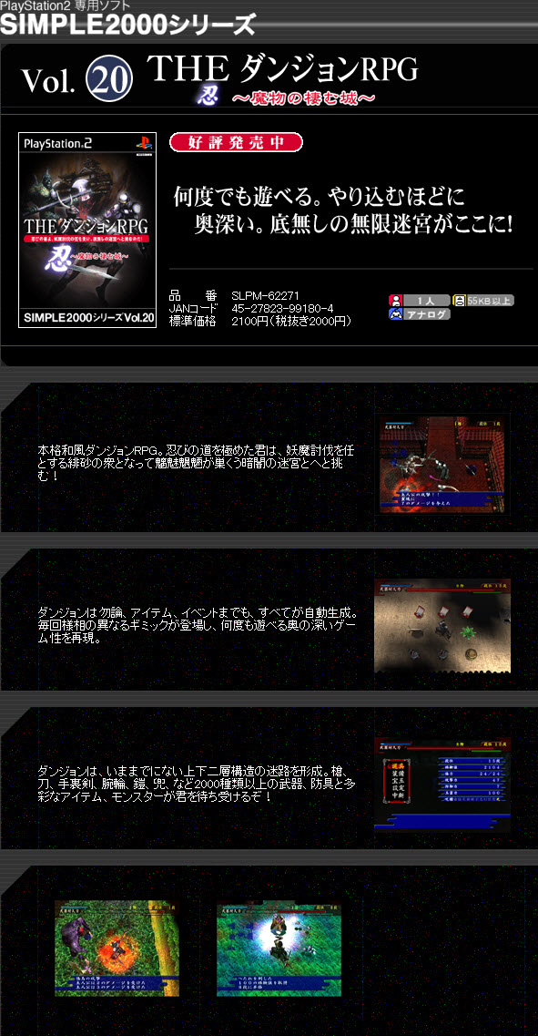 簡單2000超值系列第020集-忍(日)SIMPLE 2000 SERIES Vol.20 THE DUNGEON RPG Nin - Mamono no Sumujyou(SLPM62271)