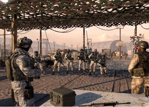 《使命召喚6:現代戰爭2》保留歷代的傳統作風,遊戲一開始玩家會置身於美軍基地進行訓練,一旁的教官會講解身為美軍必知的“作戰守則”,並要求玩家示範各種基本的射擊要領。首先面對桌上的M4A1步槍,並且按住手把X鍵拿取,玩家就可以回頭面向靶場等待教官的下一步指示。筆著趁教官還在講解要領時分心了一下,靶場的右側這幕超美的景色,不得不讓我把它拍下來與玩家分享