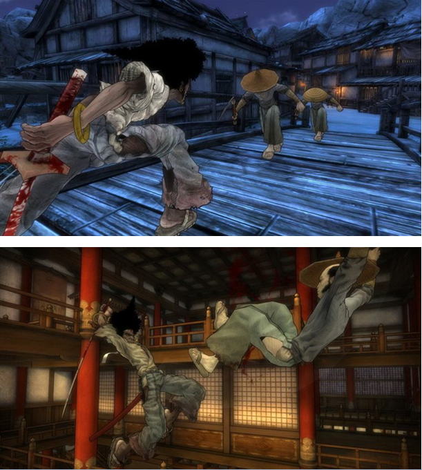 遊戲簡介: 《爆炸頭武士》本是由日本插畫家岡崎能士創作的漫畫作品,在日本的人氣也並非很高,大概因為主角是一名黑人的關係,該作被引進到美國之後卻立刻受到了前所未有的喜愛,後又被改編為動畫片和電影。