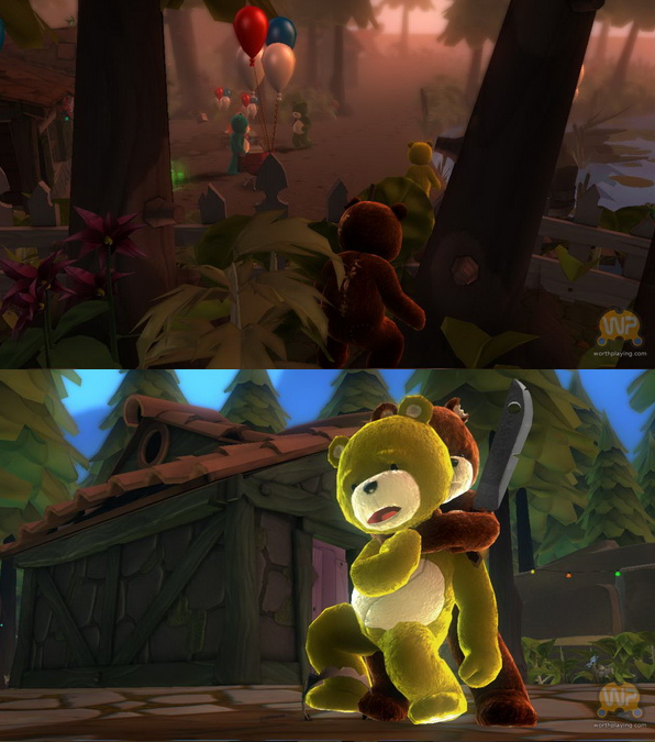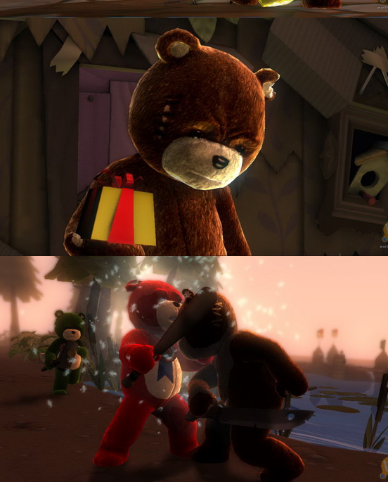 在《頑皮熊》中,玩家要做的事情就是不斷地刺激和嚇唬其它的熊,本作初步設計有30個關卡,還有各式各樣妙趣橫生的武器提供給大家使用。從目前的描述來看,本作的形像似乎與玩具中的TeddyBear有些相像。
