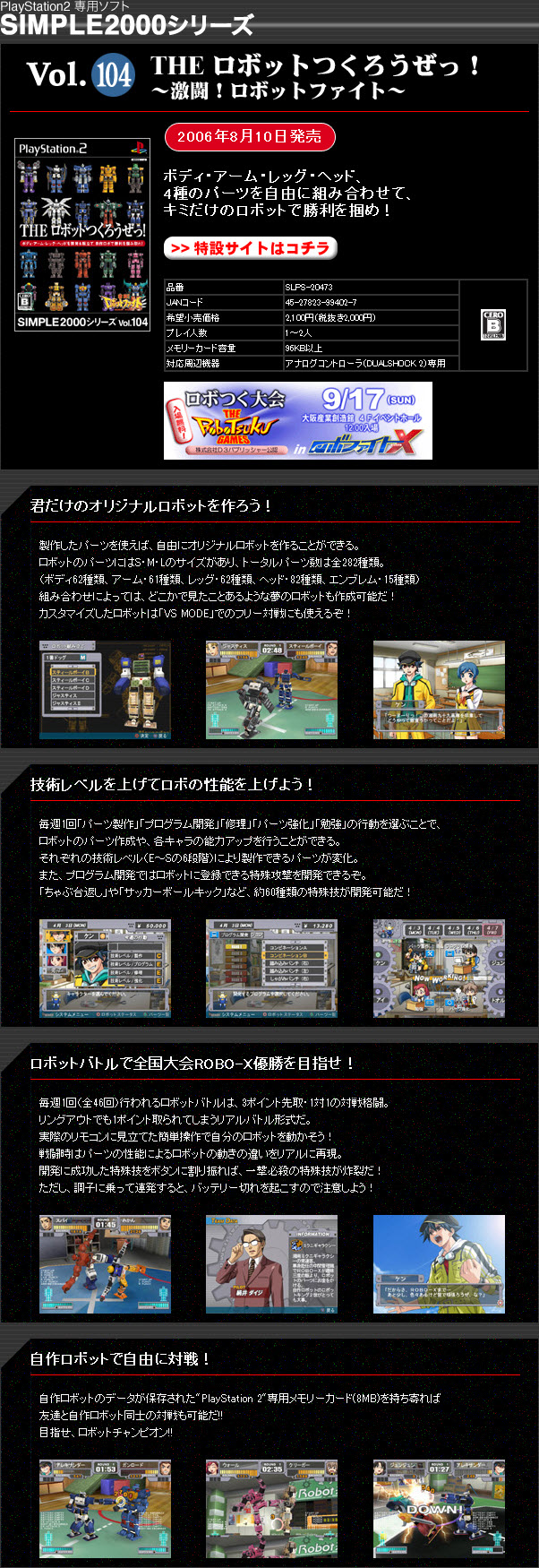 簡單2000系列第104集-製作機器人(日)Simple 2000 Series Vol.104-The Robot Tsukurouze Gekitou Robot Fight(SLPS20473)