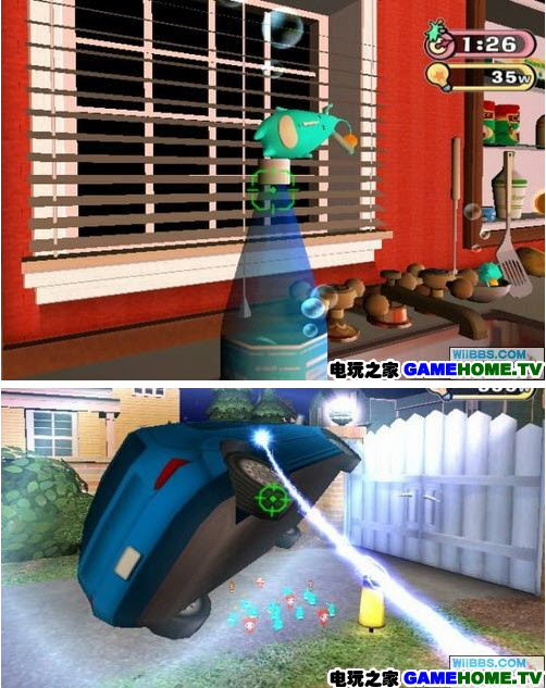 以上就是《Elebits》的故事架構背景,而玩家在本遊戲中的任務就是要用自己手中的道具收集到盡可能多的這種有著神秘力量、被稱為Elibits的小傢伙。就是這樣一個有著簡單的背景、簡單的遊戲目的的“輕量級”遊戲卻在Wii這一平台上,依靠Wii的遙控手柄成為了一款讓人期待的遊戲。