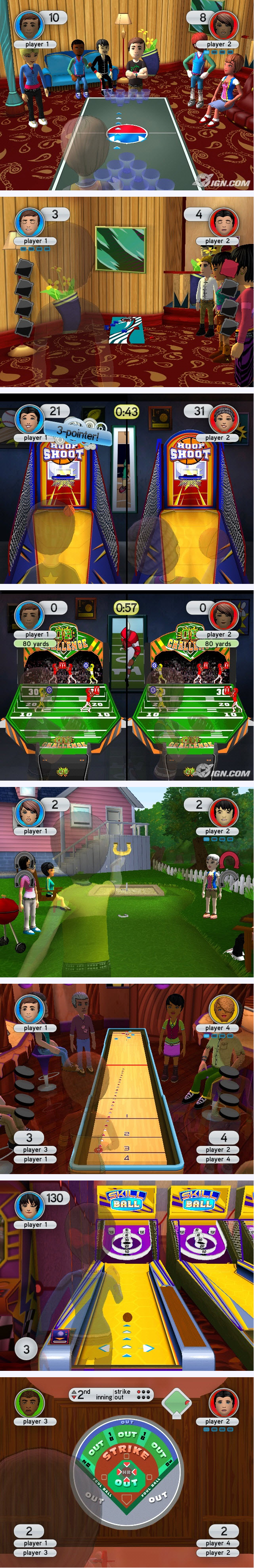 一共有7個小遊戲的組合,都是國外的傳統遊戲: Play Darts, Table Hockey, Shuffle Board and Hoop Shoot, or try your hand at variations of classics like Skii Ball, Ping Cup, and Trivia.