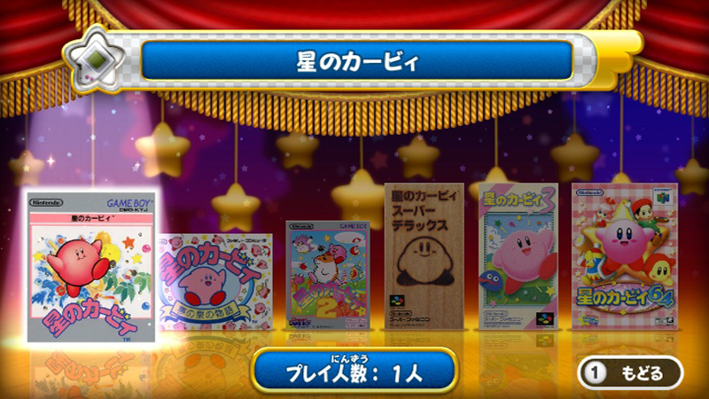 從系列第一個作品《星之卡比》開始到N64《星之卡比64》系列總共六款作品,玩家都可以在Wii 當中享受遊玩的樂趣。