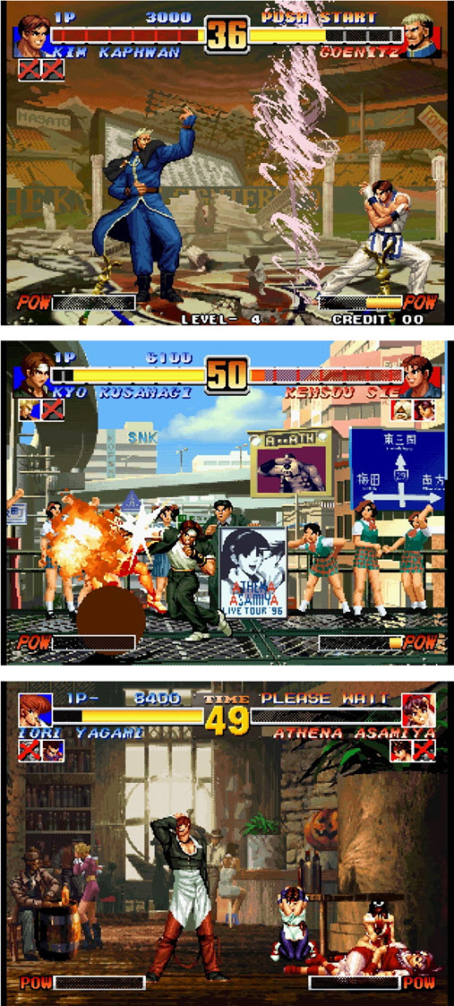 《THE KING OF FIGHTERS(拳皇)》─SNK(現為SNK PLAYMORE)製作的格鬥遊戲系列。中文譯名來自香港與大陸地區翻譯,於KOF‘98時SNK決定使用此譯名。除此之外,台灣常用的譯名有格鬥天王和 戰鬥群王等譯名。首款作品於1994年推出,有別於當時熱門的格鬥遊戲,以隊制(三人為一隊)形式戰鬥。另外由於本作品不少角色是來自當年SNK旗下其他 的作品,因此也掀起了格鬥遊戲CROSSOVER的熱潮。