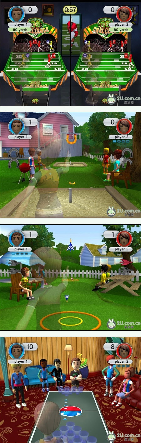 遊戲聚會2》與系列前作一樣,仍是一款迷你遊戲合集軟件,不過本次遊戲中收入的迷你遊戲種類達到了11種,其中包括迷你保齡球、3D飛鏢和擲馬蹄鐵等等,而且每個迷你遊戲都進行了強化,比如支持四人同時遊戲、制定角色形象等等。