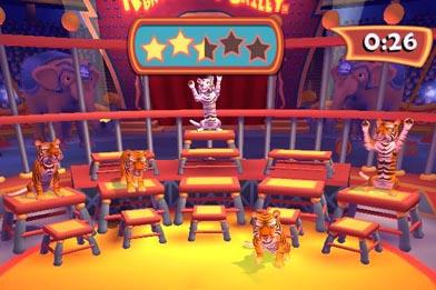 遊戲簡介 本 作是款動感十足馬戲聚會遊戲。遊戲中玩家將扮演訓練有素的雜技演員,完成諸如飛空人體炮彈等項目,還可以訓練兇猛的孟加拉虎或者表演重力球上騎摩托車等。 玩家可以表演讓人眼花繚亂的空中雜技,也可以站在亞洲象上表演具有異國風情的舞蹈。但是你的表演搭檔比如亞洲象不是每一個人都能與其成為好朋友的,玩家需 要精心的護理它們,給它們好吃的,保持它們的健康和清潔,並且不斷磨練自己的技能,這樣才能得到亞洲象等動物搭檔們的認可和配合。遊戲中包含40多個項 目,其中有8個是多人遊戲。遊戲中有超過100種古怪的獎品,包括爆米花、大象畫、玉米狗、林靈兄弟海報等。在遊戲中你還可以使用平衡板測試自己的靈敏 度。【遊戲截圖】