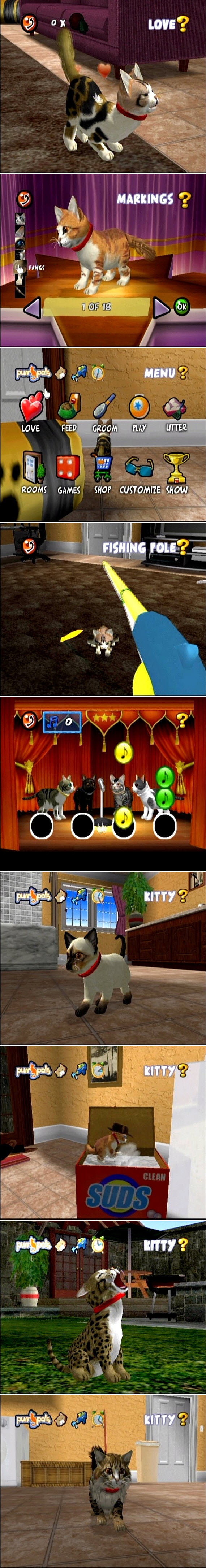 遊戲整體的構架與《任天狗》相似:玩家可以通過觸摸屏和麥克與小貓進行溝通,通過比賽等活動獲取獎金來購買小貓的裝飾品和玩具。