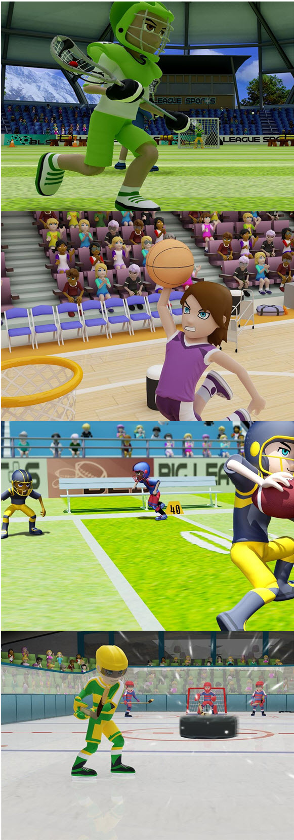 集合了世界上最受歡迎的6大類體育項目,包括足球,網球,籃球,橄欖球,兜網球,冰球。共安排了22種賽事,各最多4人一起遊戲,有單人模式,馬拉松模式和錦標賽模式,又一款可供聚會及全家一起上陣的體育類遊戲