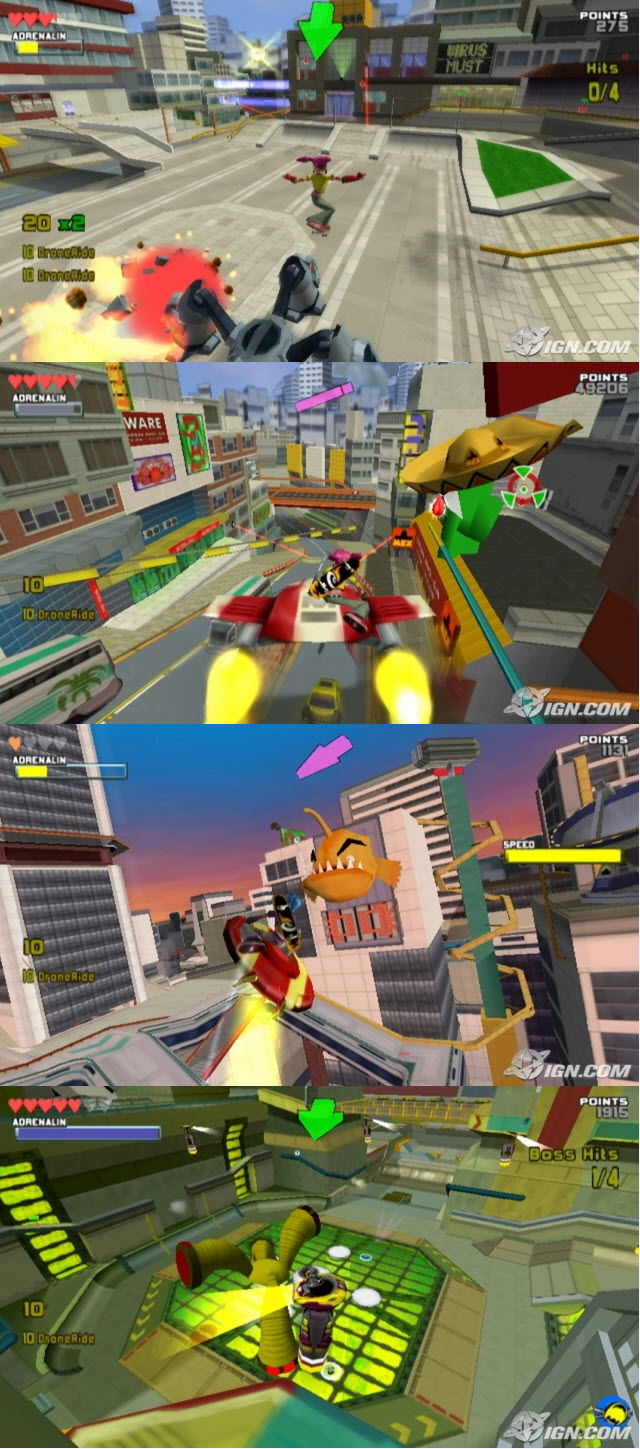 一個滑板主人的當你拉拉鍊在盤旋汽車,在鐵路上磨,而且在一個未來派的大都市各處拉不舒服詭計小型爵士樂團之間。 隱藏的獎金和項目將幫助你們使邪惡的捕捉者感動為了要釋放你的朋友 你的抓住的雷射和可信任的滑板是全部你需要有味道下來你的報應和城市方面的復位和平!