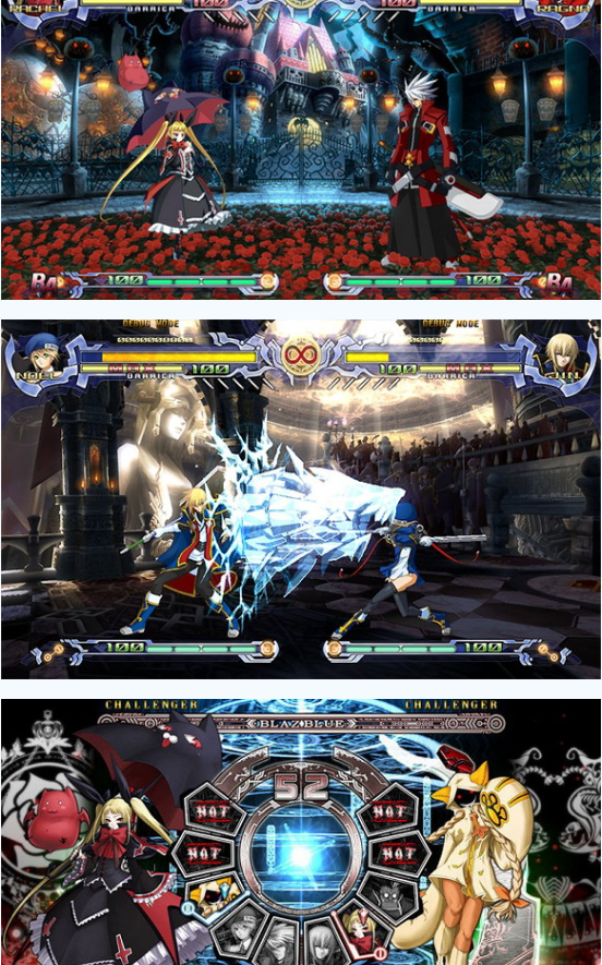 《BLAZBLUE》是ARC SYSTEM WORKS 公司集合了人氣2D格鬥遊戲《罪惡工具》系列原班人馬進行開發,採用了TAITO TypeX2基板,畫面細緻度與華麗度大幅提升,並實現16:9的畫面比例,全面採用WXGA 1280×768高解析度,並加入眾多嶄新的格鬥要素。 《BLAZBLUE》由2D人物+3D背景的方式構成,精細度較同一製作團隊的老牌代表作《罪惡裝備》高出3倍以上,特效也更為華麗,讓玩家體驗真正次世代的2D對戰格鬥樂趣。