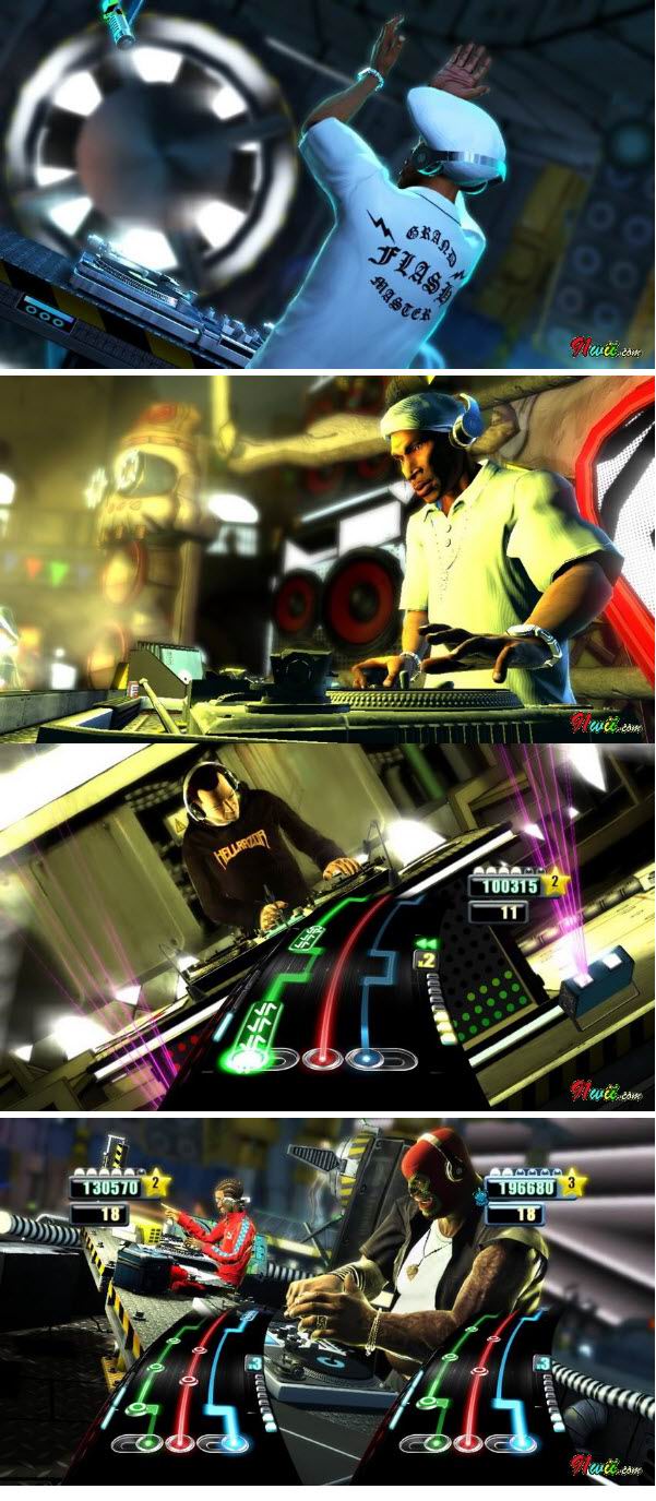 另外,遊戲也可調整為自動模式,幫助玩家在開設個人舞會時多了個音響設備。《DJ 英雄》同時支援線上多人模式,玩家可以與其他玩家好好較勁。!