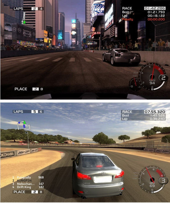 由於提供了100條真實賽道和400輛汽車,本作的數據量空前龐大,不得不使用兩枚光碟存放;可近似無限的自定內容絕對可以滿足車迷對汽車的改造欲;首次加入的車體損壞系統使得比賽更加真實;有效的幫助系統使得初次接觸遊戲的玩家也能夠逐步上手。
