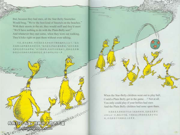 蘇斯博士的書不僅對孩子,而且對大人都有著無窮的魅力,因為它們能帶給你最純粹的快樂。 好的圖畫書不但適合孩子一遍一遍地看,而且適合所有年齡的人看,蘇斯博士的書就是這樣,直到我們長大甚至老去了,拿起他的書,臉上總會情不自禁地綻 出笑容。