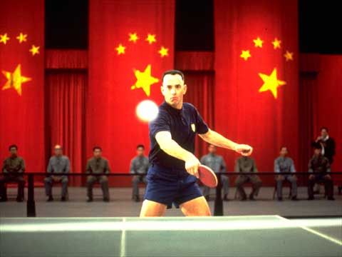 作為乒乓外交的使者,阿甘還到中國參加過乒乓球比賽,並為中美建交立了功。在“說到就要做到”這一信條的指引下,阿甘最終闖出了一片屬於自己的天空。他教“貓王”埃爾維斯·普萊斯里學跳舞;幫約翰·列農創作歌曲;在風起雲湧的民權運動中,他瓦解了一場一觸即發的大規模種族衝突;他甚至在無意中迫使潛入水門大廈的竊賊落入法網,最終導致尼克松總統的垮台。