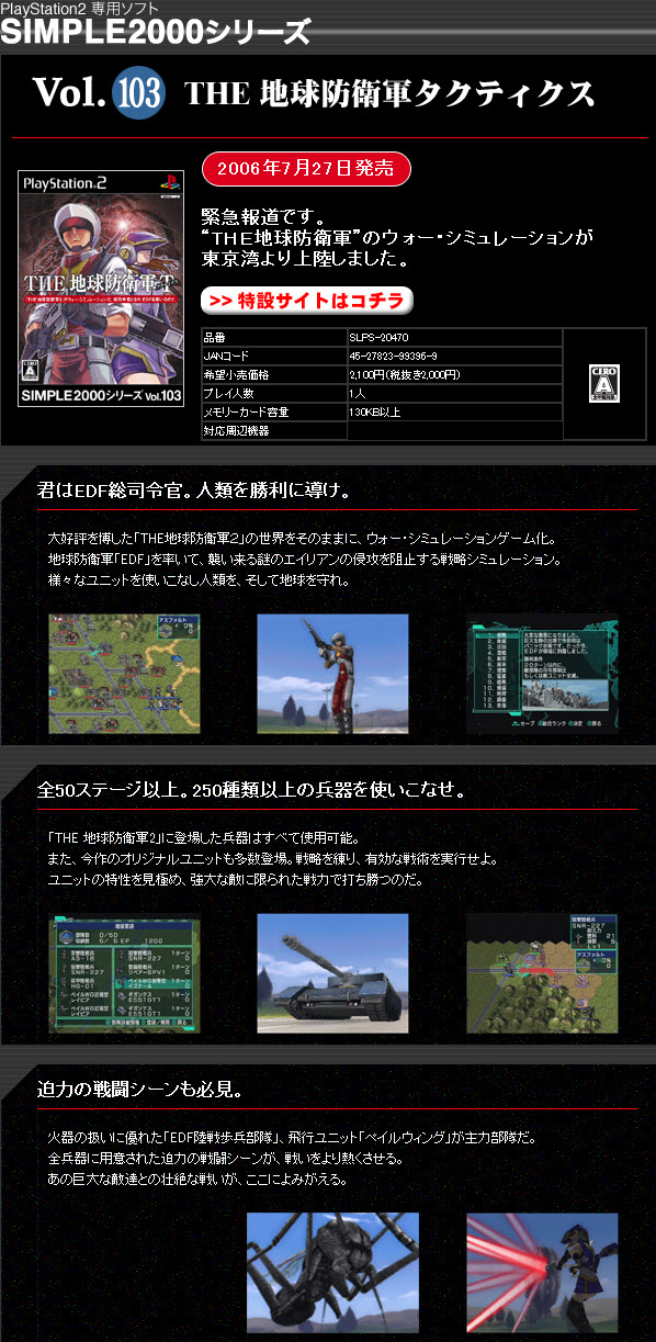 日文名稱:SIMPLE2000シリーズ Vol.103 THE地球防衛軍タクティクス