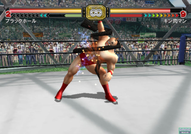 遊戲簡介: (以官方網站為準) 對戰格鬥遊戲《筋肉人 筋肉大獎賽2》在前作的基本上全內容追加後於PS2 發售。 本作中玩家可遊玩共39位超人、此外也收錄了以前的傳說遊戲 《筋肉人》是1979至1987年在《週刊少年JUMP》上刊載的人氣漫畫,其動畫版也反 應不俗。這次的遊戲是三月的大型電玩版本的移植之作。操作部分由方向鍵、打擊 、摔投、防禦、必殺技組成,而連續按打擊按紐的話就會形成連擊。打擊、摔投與 方向鍵結合就可以使用出很多精彩的技巧,非常有觀賞性。當必殺槽攢滿後就可以 使用必殺技。根據人物不同使用的招示也不同,基本上都再現了原作的經典必殺技 。防禦按鍵按住就可以完全防禦對手的打擊,配合方向鍵還可以彈開對手。