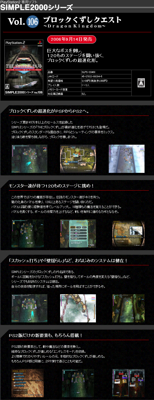 簡單2000系列第106集-打磚塊傳說-龍之王國(日)Simple 2000 Series Vol 106 DragonKingdom(SLPS20468) |