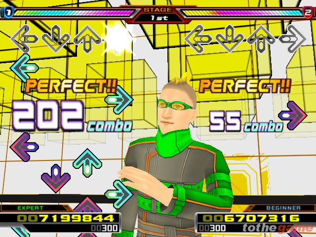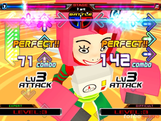 遊戲簡介:於PS2上登陸的本作是移植自在全日本絕贊運營中的Konami人氣街機跳舞遊戲「《DDR》系列最新作」《DDR革命 SuperNOVA》,遊戲一共收錄TOXIC/HELEN、GOLDEN SKY/SMiLE.dk等著名音樂達70首,另外還從其他的BEMANI系列中收錄了大量的人氣音樂。遊戲不僅提供了供初學者練習用的「練習模式」,還 提供了頗具特點的由Konami體育運動遊戲監修的Diet模式、從初學者到專家級玩家都可以輕鬆享受遊戲樂趣的家用機專用原創模式、以及雙人對戰模式。在六年後的今天,超新星將帶來一種新的視覺風格(屬於多樣類型),而且流行的DDR宇宙新音樂。值得PS2玩家高興的事情是,在遊戲製作中將有想不到的驚喜,而且遊戲還支持索尼公司的EyeToy(愛淘兒)。多人在線模式等其他細節,包括初學者和專家模式,語音模式,協助輔導,新的實時戰鬥模式也都在計劃中。遊戲圖片: