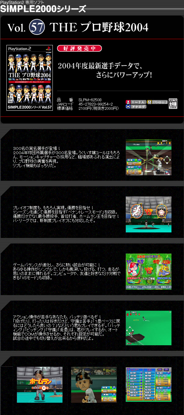 簡單2000系列第057集-THE 職業棒球2004(日)Simple 2000 Series Vol. 57 The Professional Baseball 2004(SLPM62508)