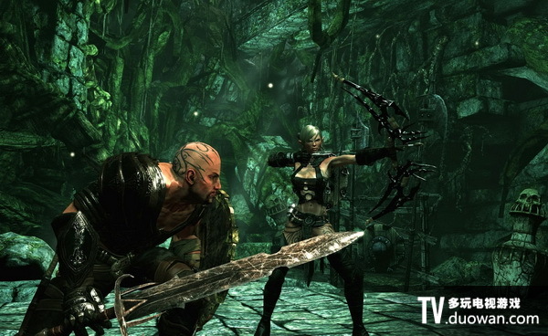 本作非常強調雙人協作,Caddoc與Elara總是並肩作戰,你可以通過在線模式與網上的朋友共同闖關,也可以進行線下雙人遊戲,戰鬥可以隨時加入和退出。當好友退出時,將會由AI控制夥伴戰鬥,在遊戲中設置的檢查點可以更換控制的角色。由於敵人也會使用遠距離攻擊魔法,因此玩家要像《戰爭機器》那樣躲在掩體後,逐步向前推進。躲避時可以使用Elara的“冰箭”等魔法攻擊敵人。 Elara還有能強化Caddoc戰鬥力的輔助型魔法。作為一款RPG,當然不能少了角色的升級。在迷宮中探索的過程中,可以從敵人的屍體上收集到魔法水晶,將其用於提升魔法與戰鬥力。能力升級方面採用了經典的技能樹系統。