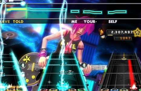 遊戲簡介: 本作是吉他英雄相關係列的第一款10歲以上級別作品,玩家可以通過吉他,鼓,貝斯和麥克風,和朋友一起享受最受歡迎的40多首曲子。遊戲繼承了吉他英雄簡單易上手的特徵。即使是新玩家也可以體驗到本作的樂趣。 遊戲畫面: