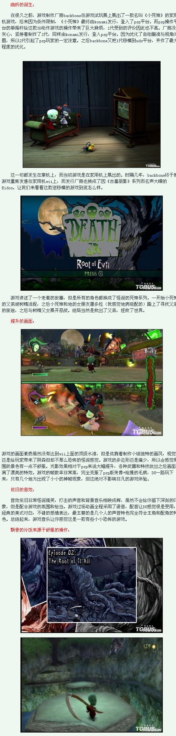 由於本作最早是PSP版本,所以針對Wii版,製作組對於視角和操作的問題都進行了相當程度的優化。在新的試玩中你會發現很容易就可以適應用Wii的手柄對小死神進行操作。你可以用模擬搖桿來操作角色移動,用A鍵跳躍。用Wii手柄上的B扳機鍵攻擊,快速連擊是連按B鍵。當你想使出重攻擊時,只需要快速揮動手柄就行。