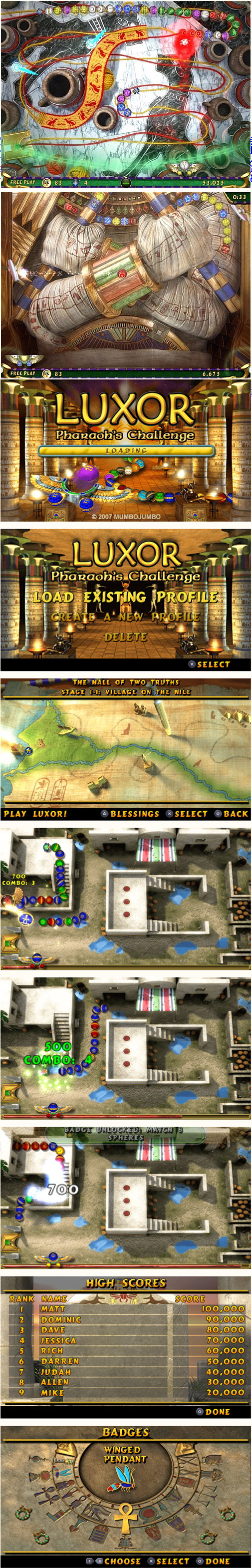 祖瑪遊戲新作《埃及祖瑪 法老王的挑戰》(Luxor : Pharaoh's Challenge)將帶你在古埃及的美麗土地上進行一次新的旅行,在遊戲中你將通過88個全新的關卡,輝煌的古代寺廟和宏偉的金字塔會讓你感受到強大的視覺衝擊,玩家將要操縱神秘的聖甲蟲在魔術球到達金字塔之前將它們破壞,而幫助你的各種道具和能力會比之前的更為強大。