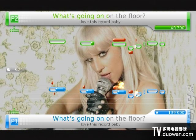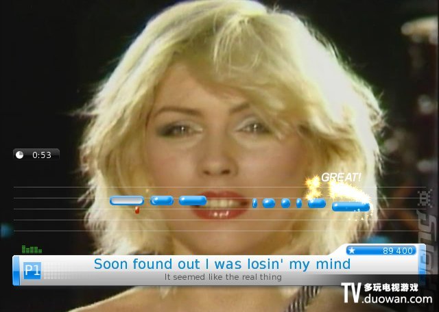 遊戲可以錄製、播放玩家的演唱,還能根據節奏對玩家的演唱進行評分。" tc="另外,游戏可以录制、播放玩家的演唱,还能根据节奏对玩家的演唱进行评分。">遊戲畫面: