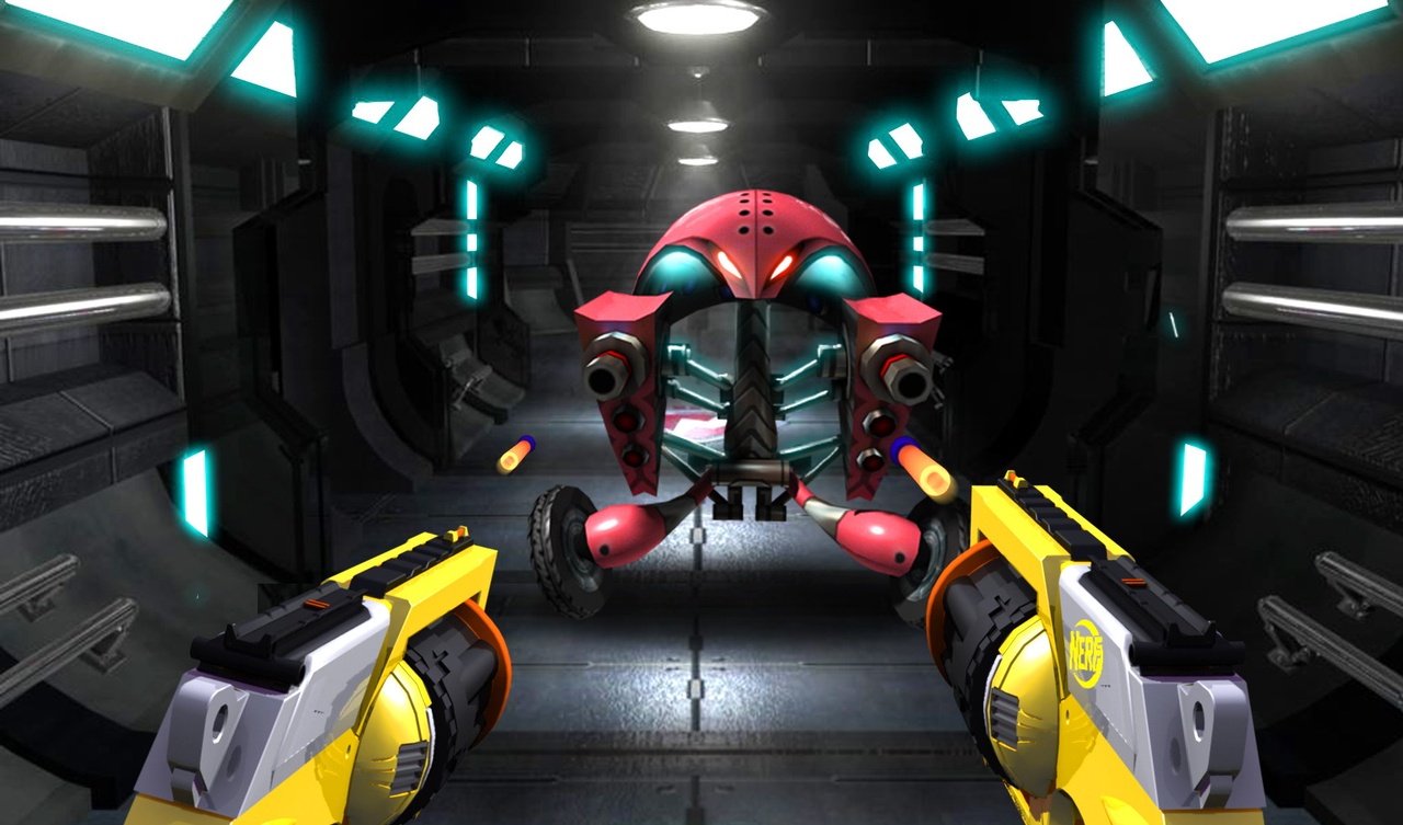 【遊戲簡介】:Nerf 是美國孩之寶公司旗下的玩具槍品牌,N-Strike則是這個品牌之下的一個發射塑料子彈(或者叫塑料飛鏢)的玩具槍系列,這款遊戲是EA 公司為這個系列開發的一款光線槍遊戲,隨遊戲還同捆銷售該系列的Switch Shot EX-3型玩具槍一把。既可以裝上WII的手把當光線槍使用,也可以發射塑料子彈。【遊戲畫面】