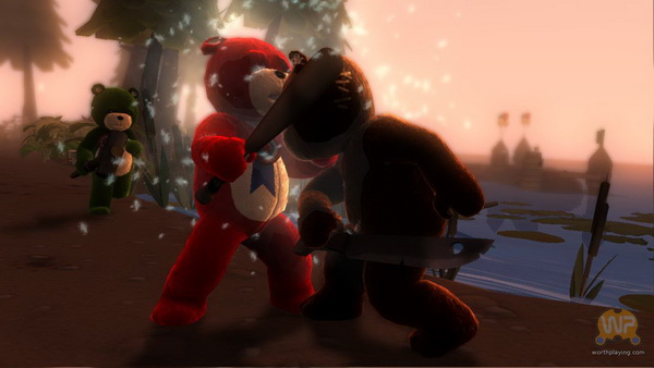 在“頑皮熊”中,玩家要做的事情就是不斷地刺激和嚇唬其它的熊,本作初步設計有30個關卡,還有各式各樣妙趣橫生的武器提供給大家使用。從目前的描述來看,本作的形象似乎與玩具中的泰迪熊有些相像。