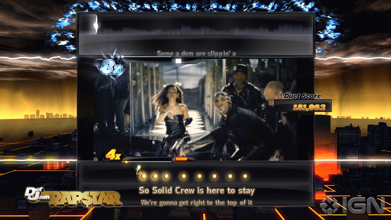 “說唱巨星”是和“搖滾樂團”相近的音樂節拍類遊戲。“說唱巨星”中,玩家也可以演唱四家主流唱片公司下誕生的所有經典嘻哈歌曲,並與朋友們透過網路進行互動同樂。主創人員說道,“現在市場上直接面向嘻哈文化迷的產品不多。而我們這個遊戲不單單是音樂遊戲,而且還融入了這個文化所有相關的元素。不單單是音樂,更重要的是那股氣質。“”說唱巨星“目前確認將會收錄超過 40首歌曲,包括了2Pac的的”我找去,“莉兒韋恩的”一毫秒“,Kanye West的的”淘金者“斯利克里克的“兒童的故事,”德州儀器的“活雅生活”,Jeezy的“擺出”德瑞博士的“Nuthing',而是'G的唐卡,”大不了的“有趣”以及武當派的“霜“。