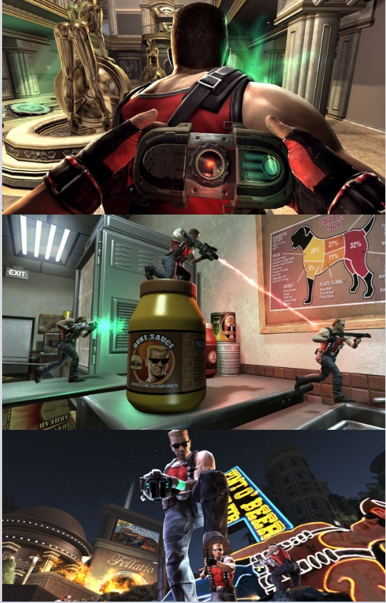 遊戲名稱:永遠的毀滅公爵 英文名稱:Duke Nukem Forever 遊戲類型:第一人稱射擊 遊戲製作:Gearbox Software 遊戲發行:2K Games 遊戲平台:XBOX360 【遊戲簡介】 一個傳奇的結束,另一個傳奇的開始,《永遠的毀滅公爵》最早在1996年宣稱將於1997年4月推出,通過中途一系列傳奇經歷,不斷的號稱更換引擎、推翻重做,直至去年5月3D Realms宣布關門,但就算這樣故事都沒有結束,仍不斷有零星消息放出。確實,故事的確沒有結束,就在今年8月首次傳出消息《永遠的毀滅公爵》被Gearbox收購,隨後在9月4號終於水落石出,Gearbox正式公佈了該作,並開放了現場試玩!就此它結束了一個跨時代的神話。