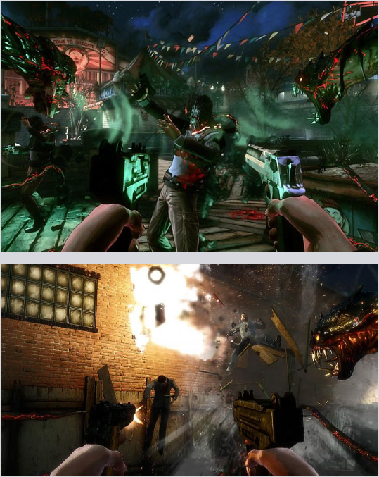 遊戲繼續支持使用火器的同時,用你的惡魔之手釋放揮鞭攻擊,攫取物體,投擲物體和敵人。