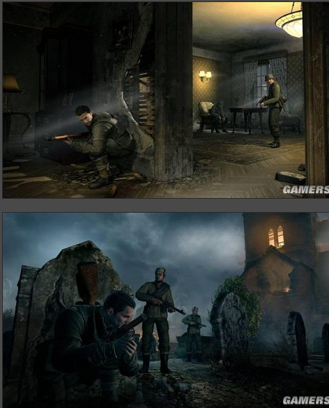 就遊戲畫面來說,對照目前市場上的遊戲算是普通水準而已,但是從整體來說遊戲畫面營造出來的氛圍以及景像都是相當細膩的,細節的刻畫採用大量的貼圖彌補了畫面上的不足,不過對電腦配備比較不足的玩家是一大福音,狙擊精英在武器的音效或者是配樂方面都是相當不錯的,不同的槍枝可以感覺出很大的差異性,爆炸音效也是很令人震撼,當然子彈射入人體之後的聲音也是非常的另人愛不釋手,潛入和遇敵的時候背景音樂也會根據行動的不同而有所變換。