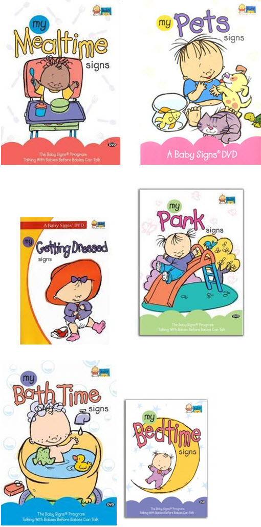 The Baby Signs?I Can Sign Complete DVD Seriesis a complete boxed set of 7 DVDs. It includes all 6 of our DVD titles plus the Welcome to the Baby Signs?Program DVD. The DVDs included in this set are: